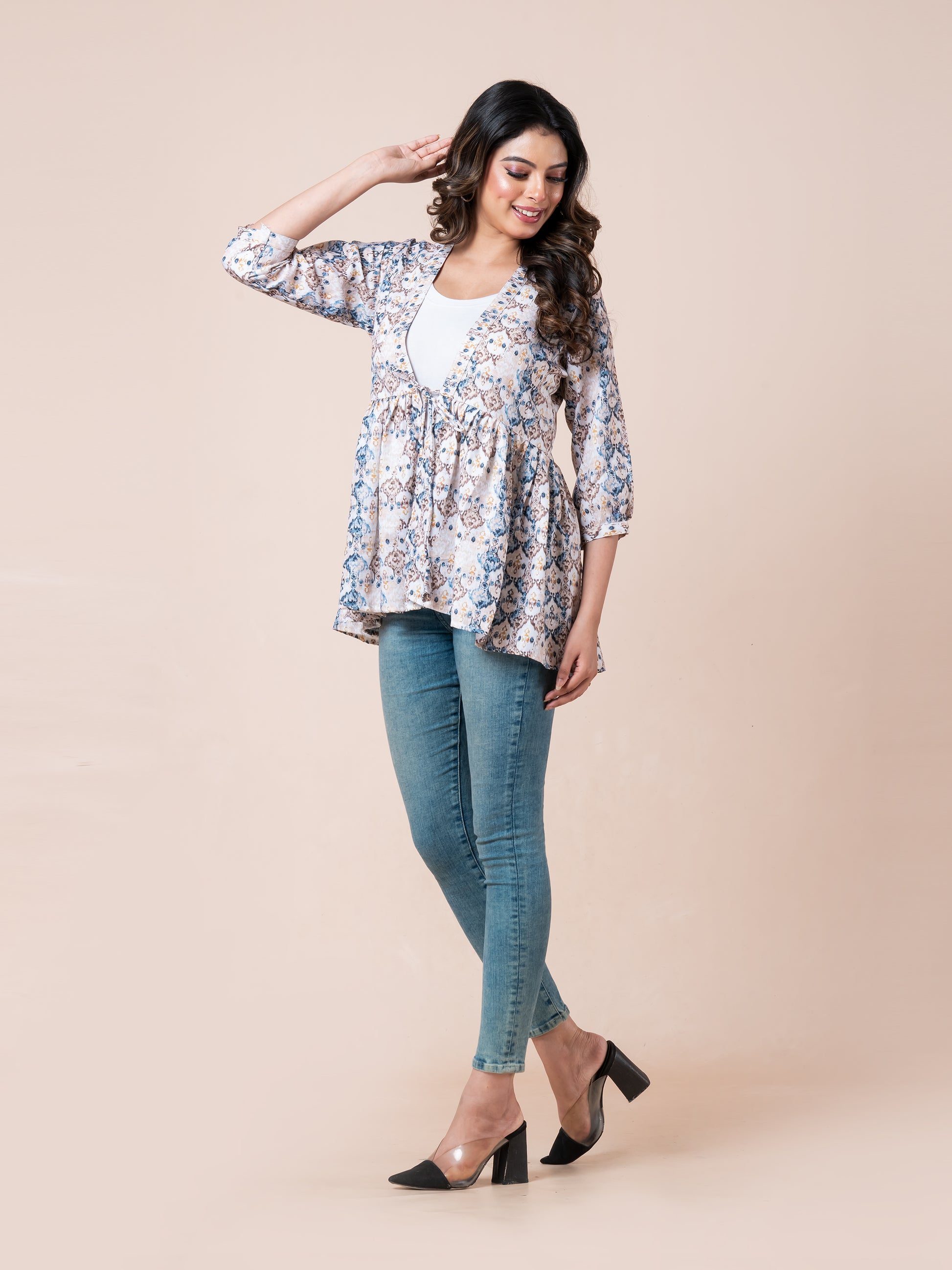 Old & Vintage Digital Printed Tie-Up Shrug for Women